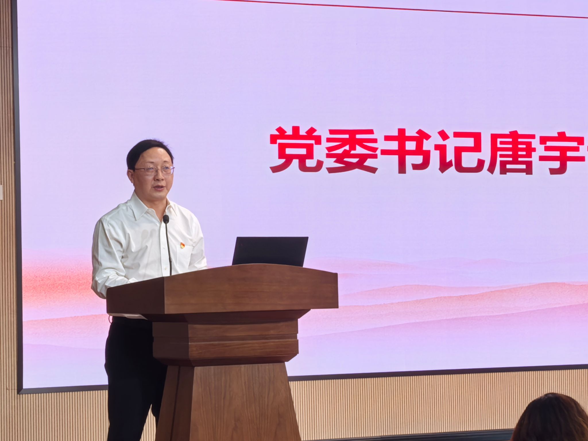 首先,公司党委书记唐宇讲话,他强调了公司召开第四次党代会的重要意义,并就此次代表选举工作提出要求:一要提高站位,以高度的政治责任感参加大会,顺利完成各项议程;二要严把标准,认真行使民主权利,确保党代会代表选举工作规范有序;三要严守纪律,坚决杜绝拉票、违规言行,营造风清气正的选举氛围。