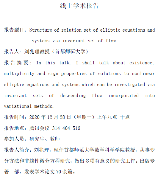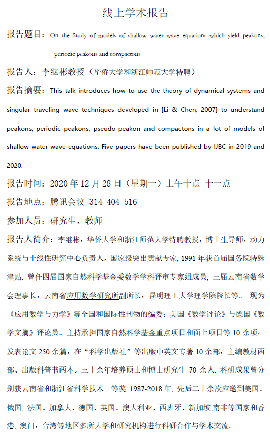 刘兆理教授、李继彬教授学术报告-12月28日