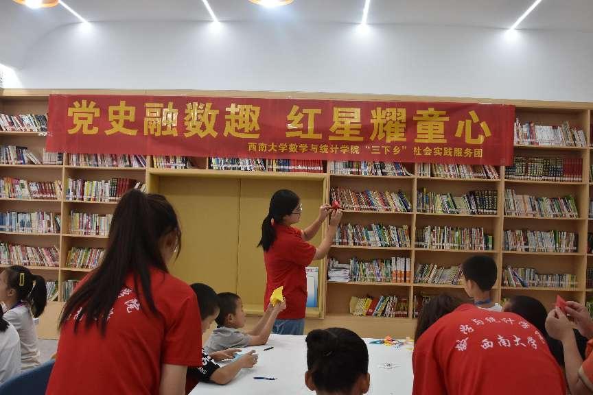社会实践服务团成员利用bevictor1946韦德官网数学折纸工作室资源,来到白市驿镇黄金社区党群服务中心开展“党史融数趣,红星耀童心”数学思维折纸课堂。社会实践服务团成员们耐心细致地教小朋友们折红色五角星,通过折纸启发小朋友们的数学思维,帮助他们认识理解国旗上五角星所蕴含的深刻意义。除此之外,社会实践服务团还积极开展革命英雄故事小讲堂,社会实践服务团成员们给小朋友们讲述了革命先辈小萝卜头以及江竹筠的英雄事迹。小朋友们津津有味的听着革命先烈的感人事迹,体悟着他们崇高的精神和顽强的意志,信仰的种子在他们心间悄然种下。