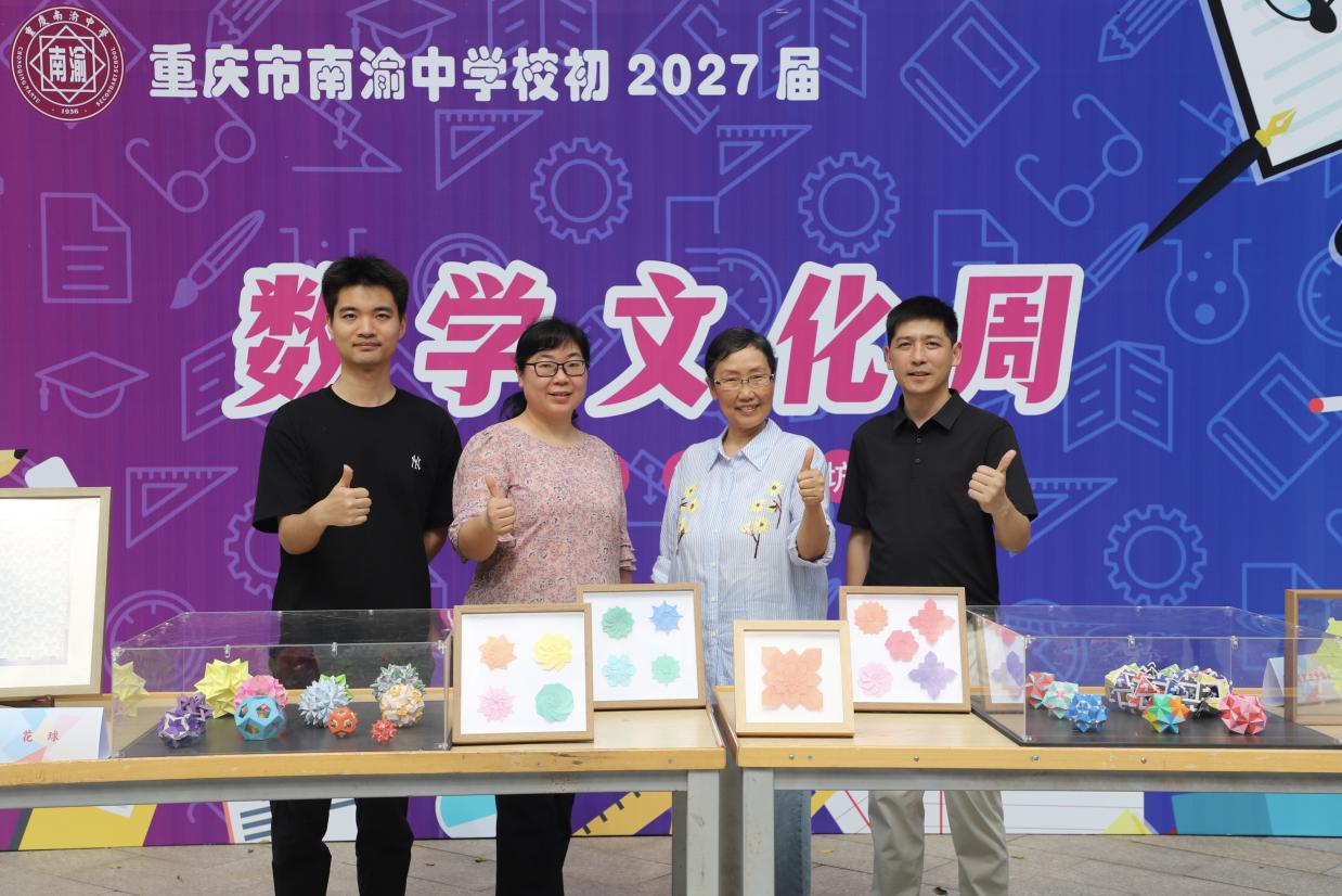 2025 年6月4日下午,bevictor1946韦德官网 “小数点” 志愿者服务队走进沙坪坝区南渝中学,开启 “数你精彩 智绘坊间” 数学文化周折纸展之旅。黄燕苹教授携刘铁、张熠两位老师,带领 12 名志愿者队员,以折纸为笔,以数学为墨,为师生们描绘了一场别开生面的文化盛宴。