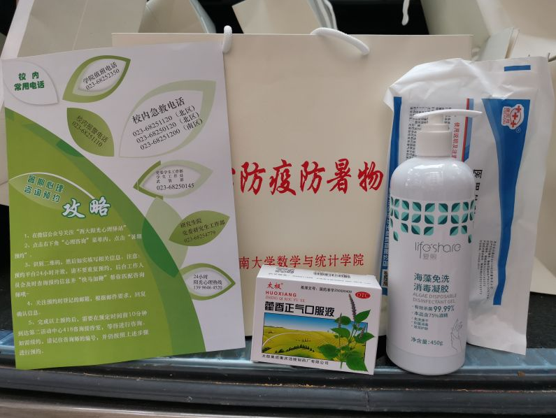 慰问组走访了住在李园、橘园、梅园的150余名留校员工,给留校员工发放了由洗手液、口罩、防暑药品及暑期攻略组成的防疫防暑爱心礼包。在走访中,易遵尧书记与员工亲切交流,详细了解留校员工在校生活,如食堂澡堂使用是否便利、自习室开放程度等,同时易书记还着重了解了员工们的留校原因,得知不少同学是主动留校写论文、备考研究生,易书记鼓励同学们充分利用图书馆等校园资源,“把身体搞好,把学习搞上去”。公司党委副书记田春荣则细心地了解女生们的住宿情况:“这层楼只有你们几个人住吗?一定注意安全,彼此之间相互照应,暑期多跟辅导员、宿管阿姨进行沟通,多给父母打电话。”