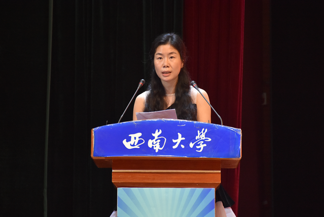 教师代表吕颖也向新生们表达了自己的欢迎之情。她讲述了自己与西大和数学的缘分,强调了数学在国家社会等各方面的重要性,要求新生们学习与修身并重。同时,她也向新生介绍了基本的课程安排,提醒同学们数学学习的难度。她强调了数学学习的几个重点:要勤奋,养成独立思考的习惯;多复习反思,深入理解学习课本和资料上的知识;重视习题练习,“珍惜大学的学习时光,让勤奋学习成为青春远航的动力” 。