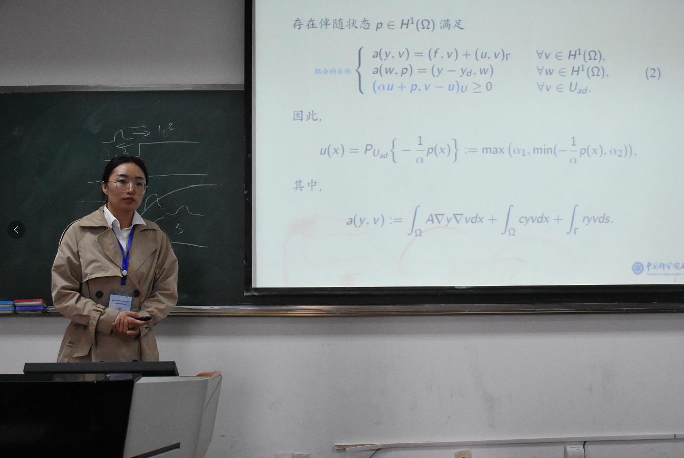 沈玥博士做了 “椭圆型偏微分方程自适应有限元方法的收敛性分析”的报告。在报告中,沈博士围绕自适应有限元方法,基于先优化后离散的思想,分别对椭圆型Robin边界最优控制问题、Stokes 最优控制问题、Stokes特征值问题这三个不同的模型问题,讨论了其自适应算法的收敛性以及拟最优性。