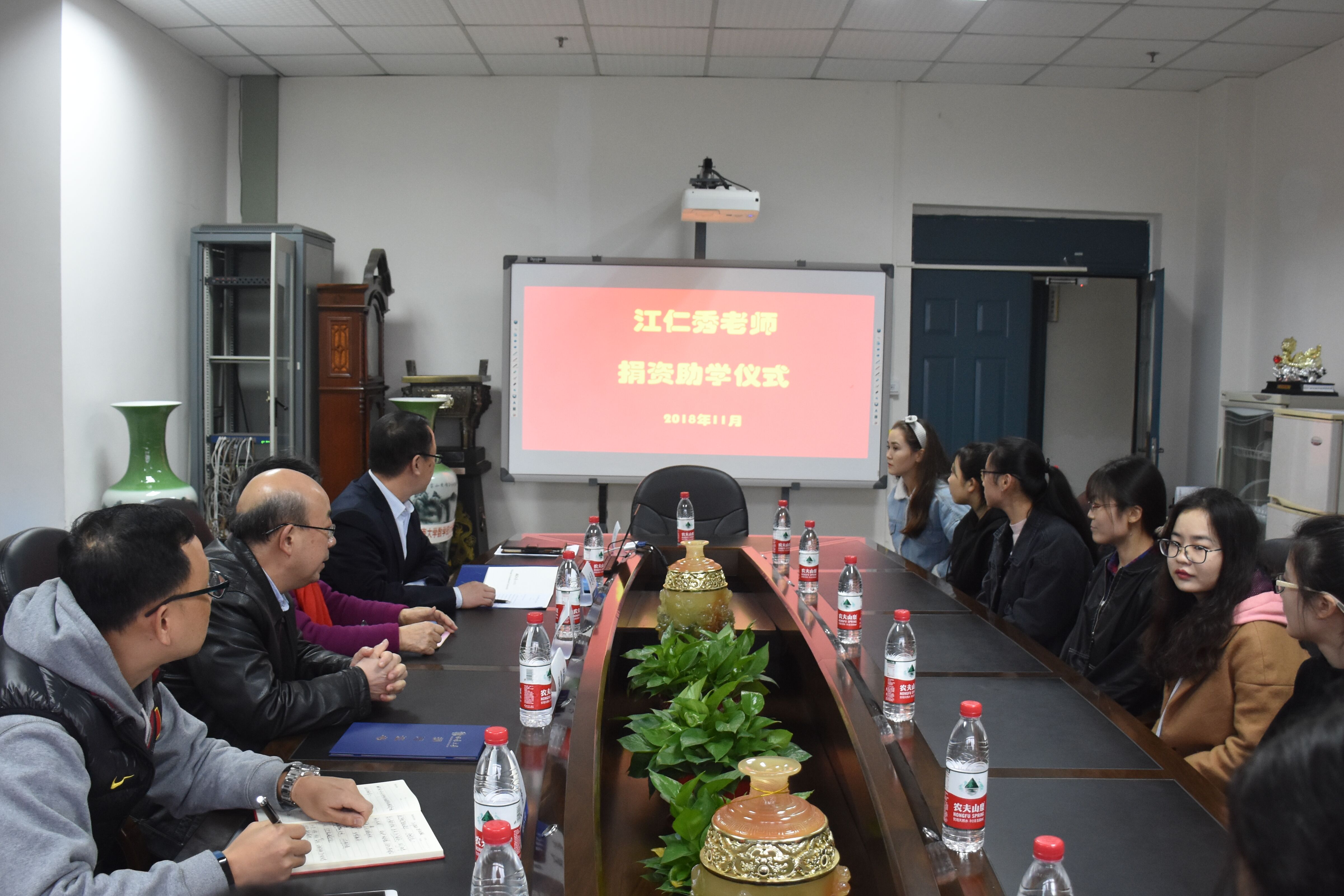 2018年11月12日下午,江仁秀老师捐资助学仪式在bevictor1946韦德官网会议室举行。bevictor1946韦德官网退休教师江仁秀副教授、对外联络部部长龚常智、对外联络部副部长刘涛、公司党委书记易遵尧、副经理王建军,以及受资助的10名员工参加了捐赠仪式。捐赠仪式由bevictor1946韦德官网公司党委副书记罗利江主持。