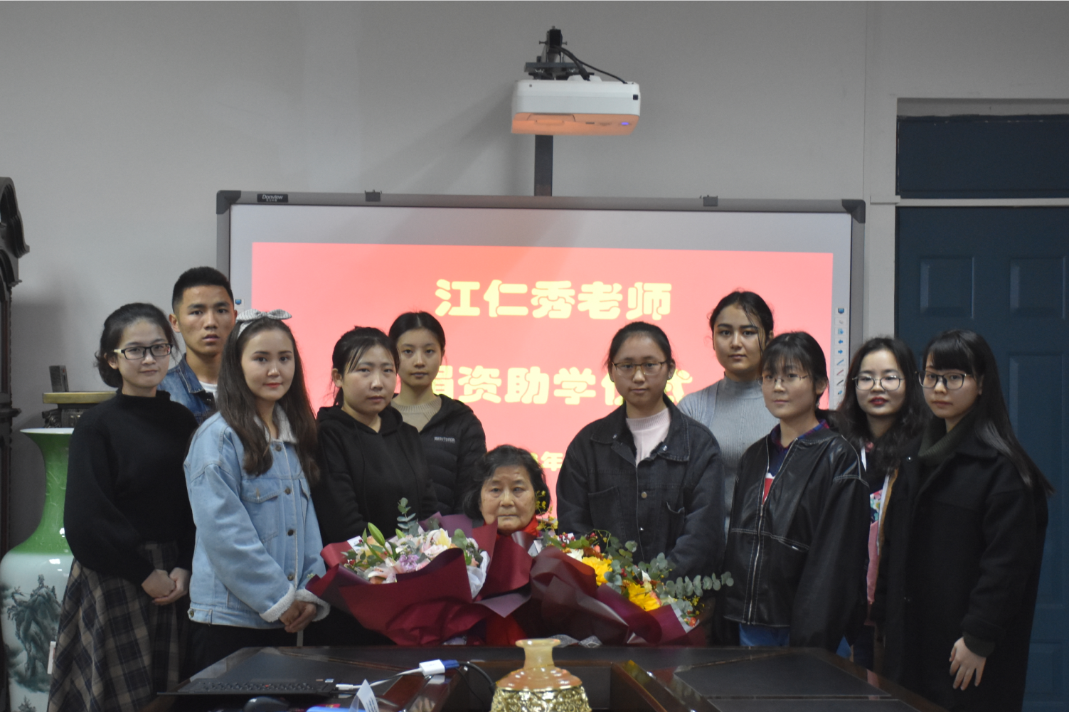 捐赠仪式当天恰逢江仁秀老师80岁寿辰,bevictor1946韦德官网和对外联络部分别为江老师献上了一束鲜花,祝福江老师身体安康,健康长寿!