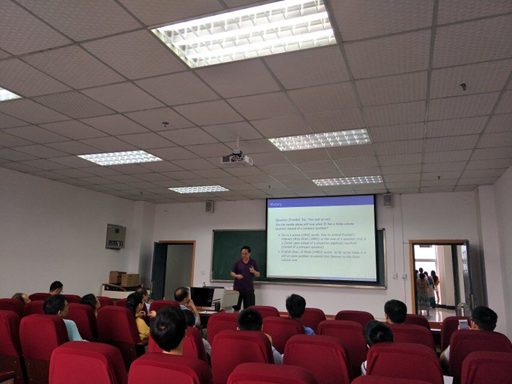 刘克峰教授做题为“具有有限体积商的有界区域上的复几何”的报告,他首先介绍了2维空间中具有紧商的有界凸域上的一些结论,然后讨论了一些高维空间中关于具有有限体积商的有界区域的刚性问题,得到了一些新的结果。这些结果给出了Yau’s猜想的部分答案。