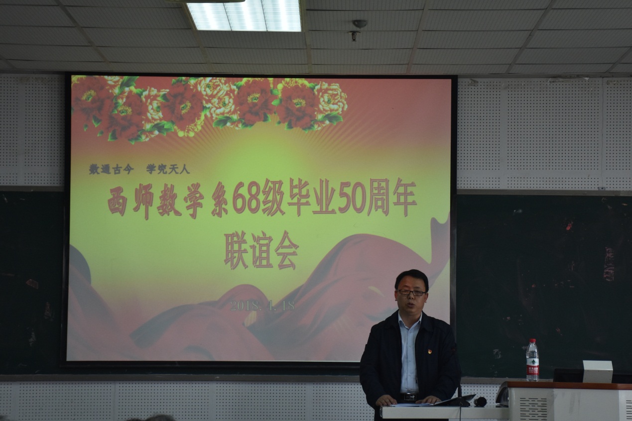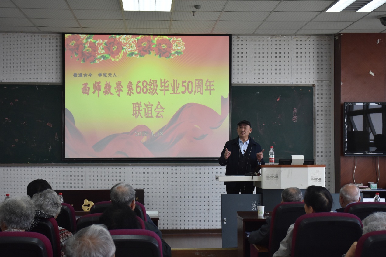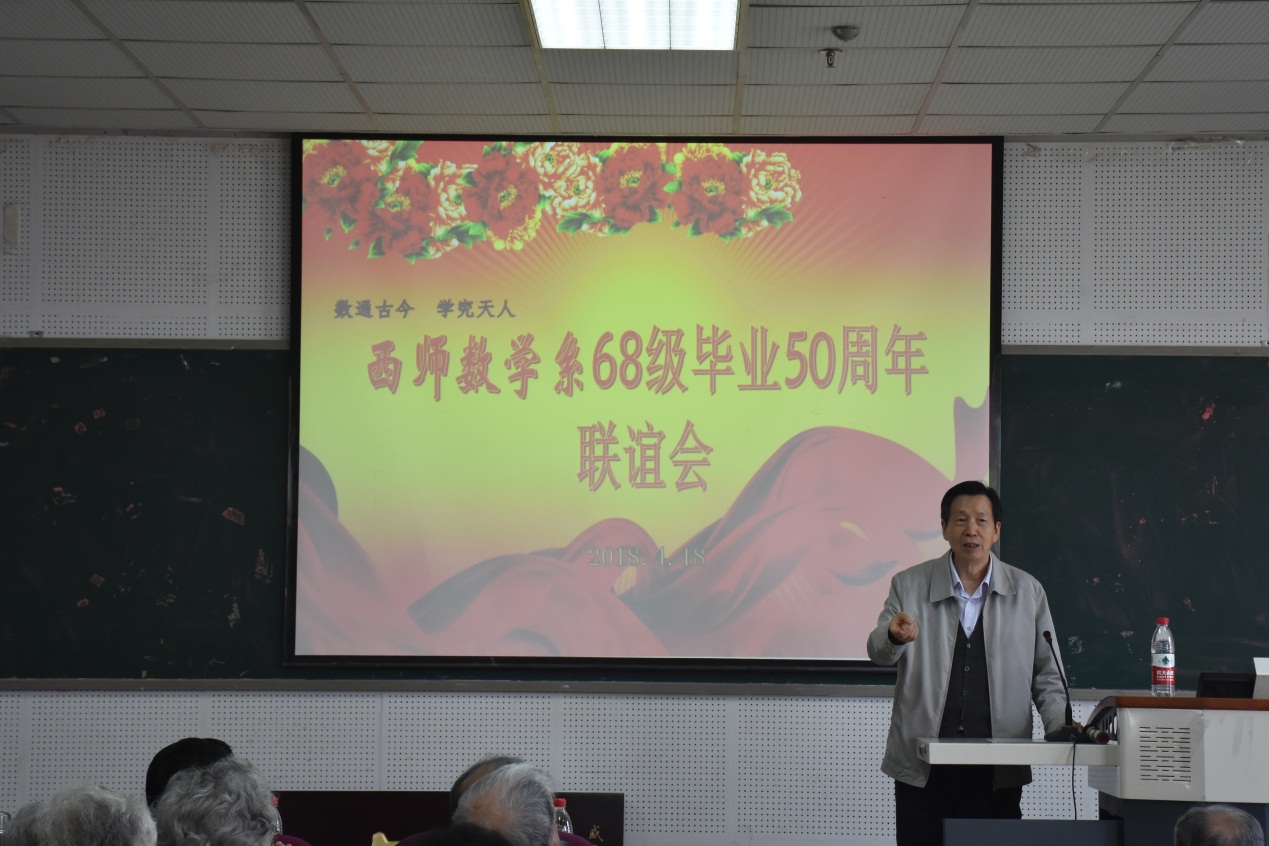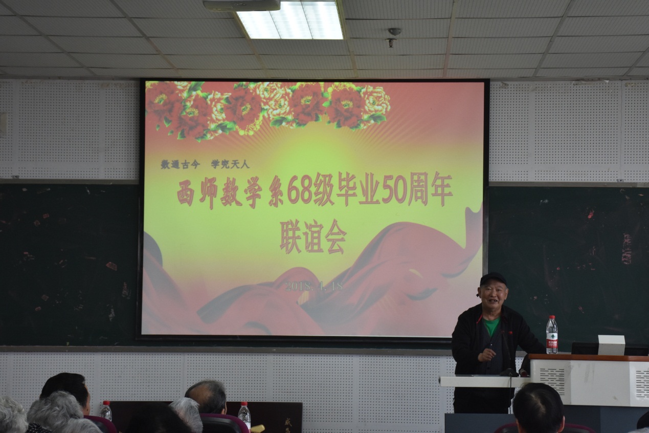 阳春四月,万象更新。2018年4月18日,正值bevictor1946韦德官网112年校庆之日,原西南师范公司数学系68级老员工齐聚一堂,在25教14楼学术报告厅举行了一场阔别已久的毕业50周年联谊会。公司党委书记易遵尧,经理唐春雷,西师数学系退休老教师王明华、赵宏量、甘朝钧、刘述萱、蒋崇珍与68级部分员工同温旧情,共抒友谊。