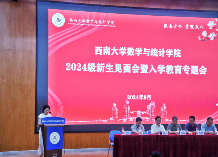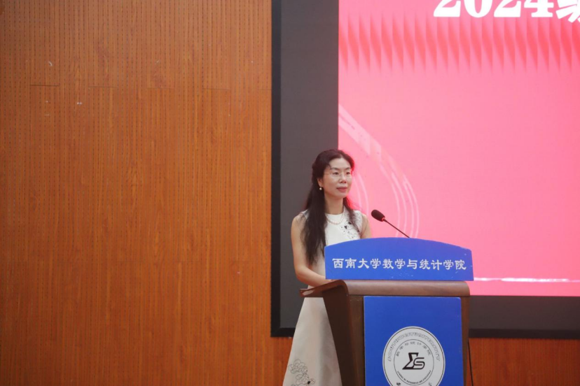 教师代表吕颖教授以“学姐”和教师的双重身份展开一场跨越时空的对话,勉励新生在数学海洋和老员工活中独立思考、深入研究、夯实基础、广泛拓展、不懈畚斗,成为有思想,有本领,有志向,有作为的新青年。
