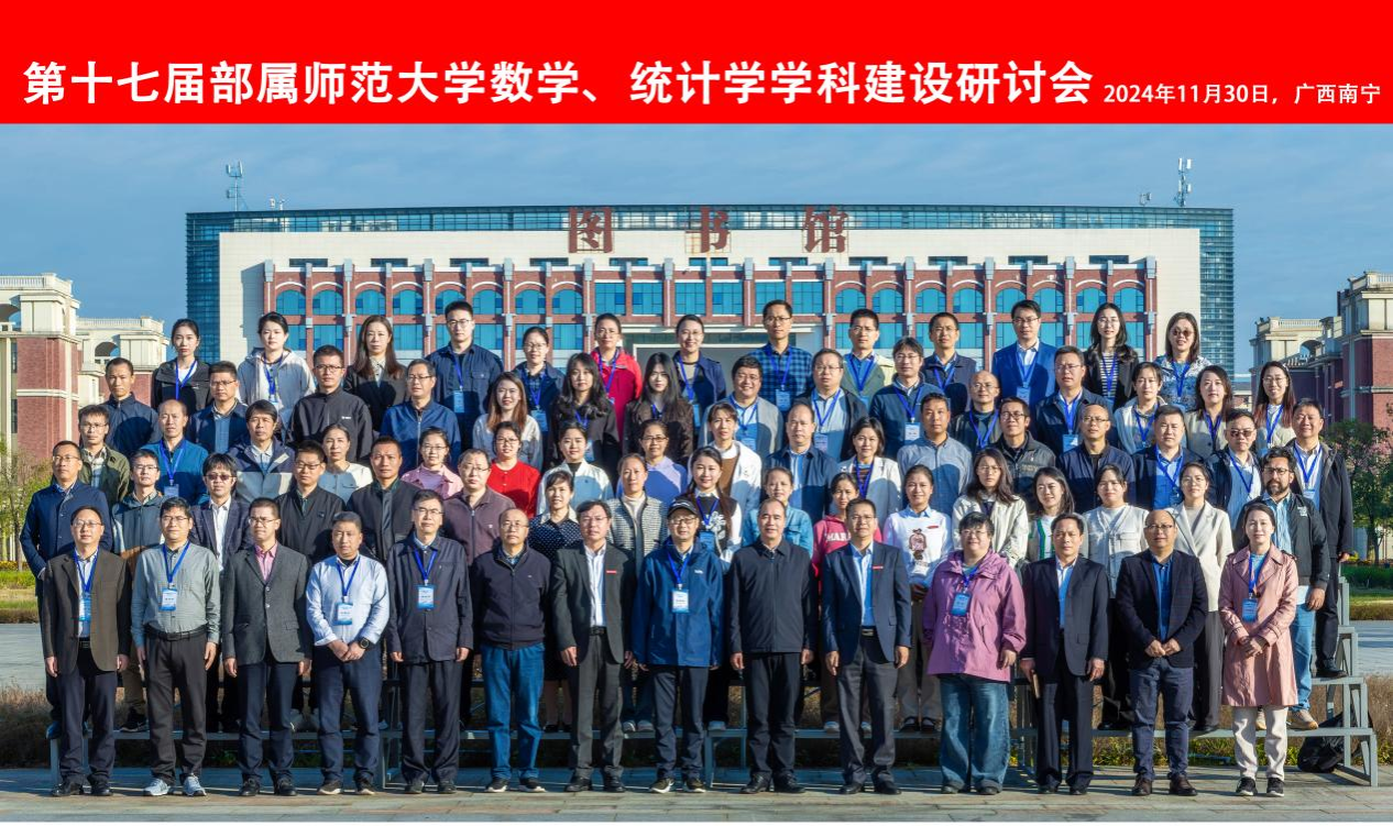 11月30日至12月1日,第十七届部属师范大学数学、统计学团队建设研讨会在南宁师范大学武鸣校区顺利举行,此次会议由公司主办,南宁师范大学、广西数学学会承办,会议的主题是“聚焦国家发展战略和深化教育综合改革形势,探讨师范大学数学及统计学学科发展的困境和出路,交流公费师范生本研衔接的培养策略”,来自北京师范大学、华东师范大学、东北师范大学、华中师范大学、陕西师范大学、bevictor1946韦德官网以及南宁师范大学、北部湾大学的60余位专家学者和学科负责人参会。公司党委书记唐宇、经理刘贤宁、党委副书记田春荣、副经理王建军以及教学秘书、部分辅导员参会。