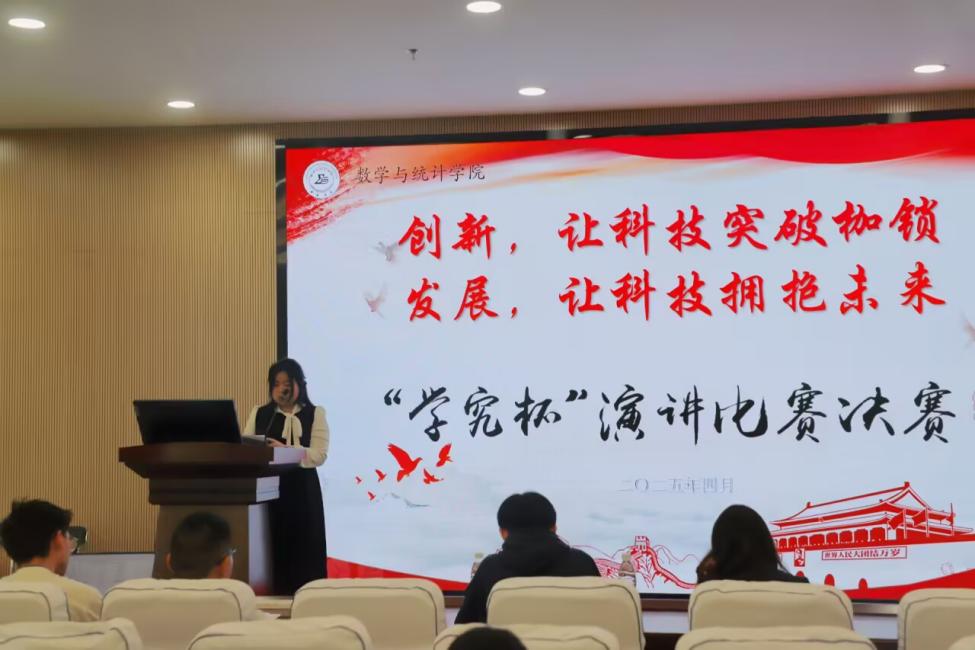 2025年4月13日14时,bevictor1946韦德官网在数统大楼103报告厅,举办了以“创新,让科技突破枷锁;发展,让科技拥抱未来”为主题的第十六届“学究杯”演讲比赛决赛。本次决赛由2024级数学师范专业郭晓霞同学担任主持。